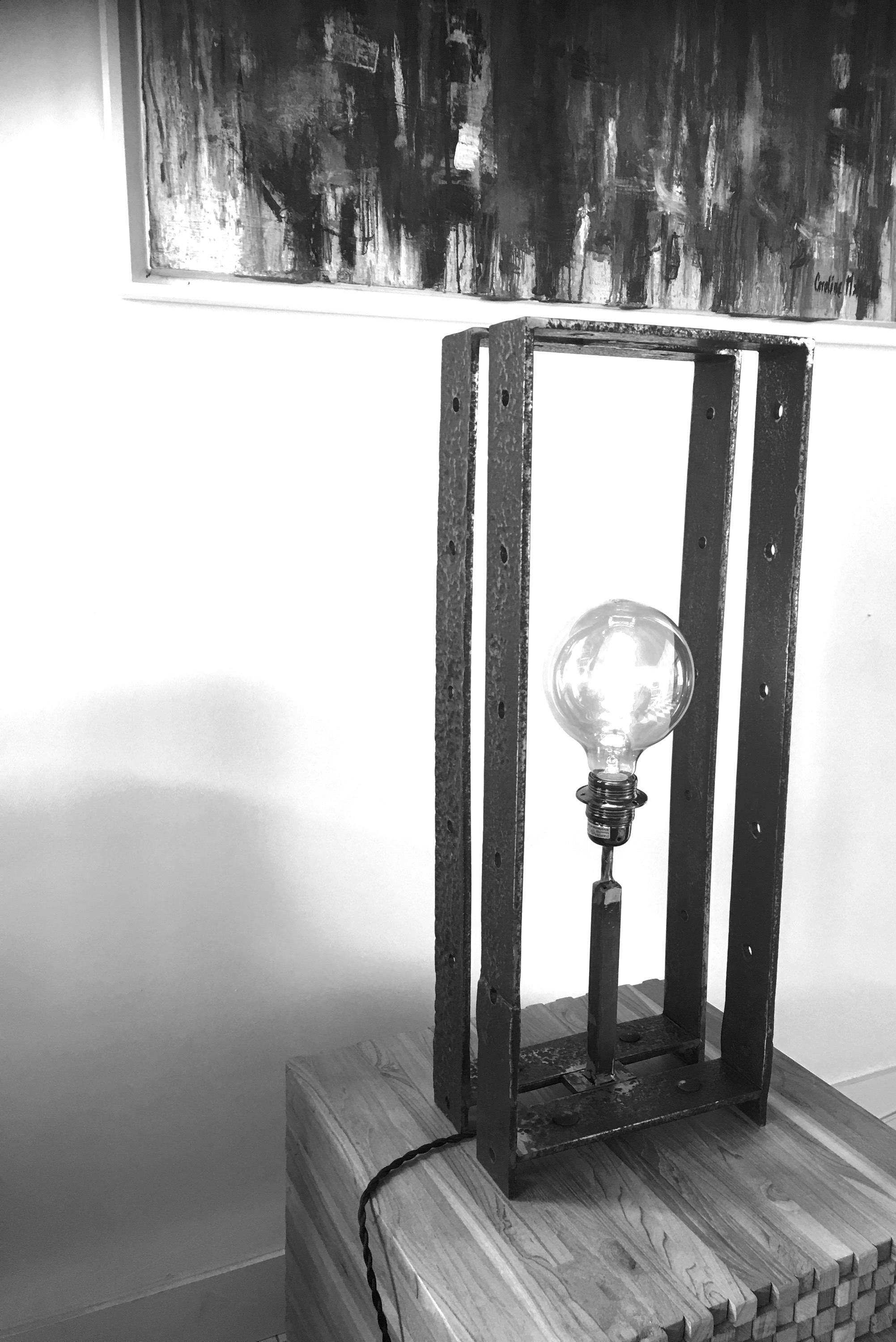 Lampe de table réalisée avec de l'acier de récupération