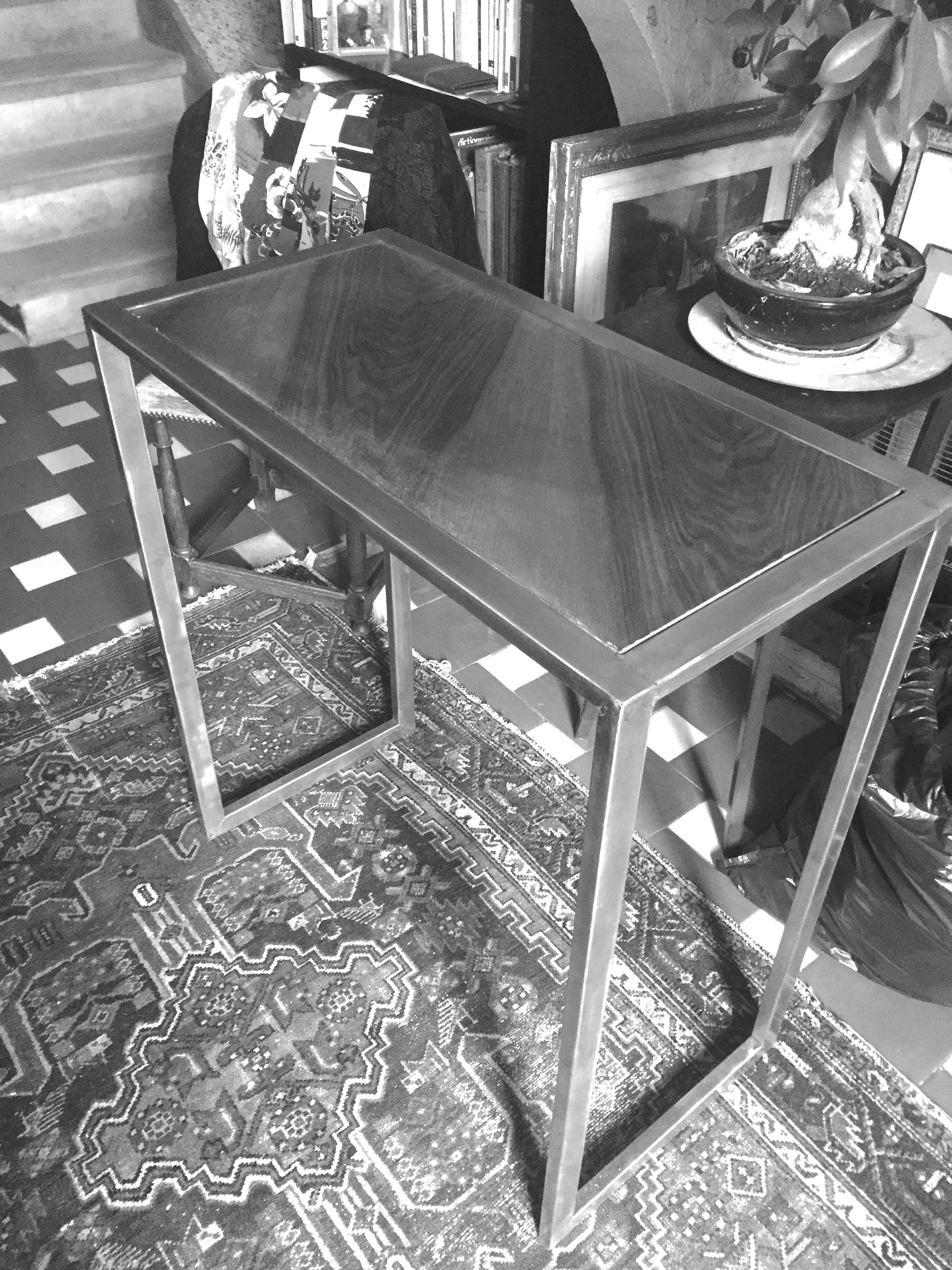 D’allure très aérienne et élégante , cette console peut se décliner avec des plateaux en bois de différences essences, y compris en bois de récupération en mode Upcycling avec l’utilisation de boiserie provenant de meubles anciens. Mais pas seulement, le plateau peut être réalisé en acier, en béton ciré, marbre etc.